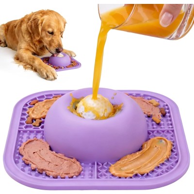 Slow-feeding dog bowl and licking pad for liquid and thick treats; non-slip dog licking bowl with interactive rolling ball.